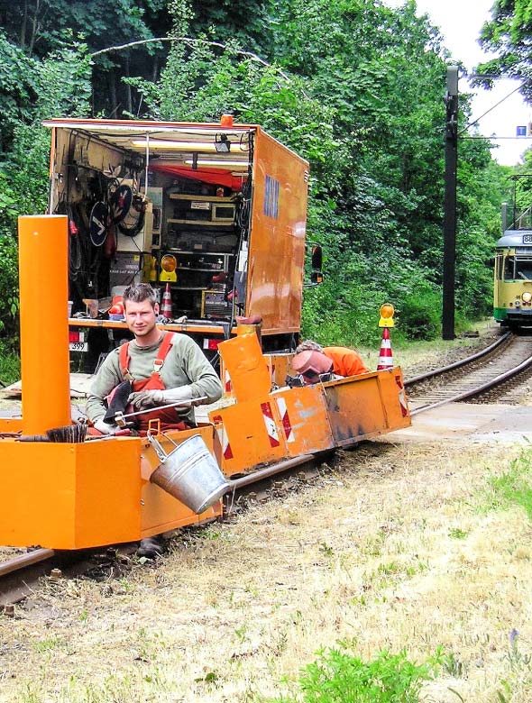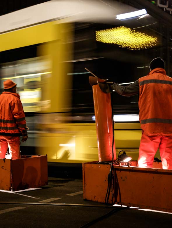 DB-geprüfte Schweißer mit langjähriger Erfahrung im Oberbauschweißen bei Nahverkehrsbahnen.